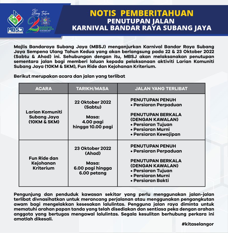 Larian Komuniti Subang Jaya 10K 2022 Register Event Organiser. 22 October 2022 Flag Off Time 10KM. Bagi kumpulan masyarakat yang perlu Projek Kebun Komuniti Majlis Perbandaran Subang Jaya ini.